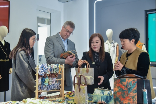 会前,温莎国际教育集团一行实地调研了学校1960大学生创新创业中心、丝绸纺织服装全链路数字化展厅,详细了解学校在非遗技艺传承、创新创业教育、时尚产业数字化转型等方面的建设成果,对学校办学特色与育人成效给予高度评价。