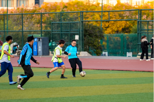 赛后校足球队队长岳清政说:“在奔跑与协作中,我们切磋技艺、突破自我,更在并肩作战里深化了同窗情谊。两校区队员从陌生到熟悉,用足球搭建起沟通的桥梁,让这份跨越校区的联谊充满温度与力量,成为校园生活中难忘的成长印记。”教师代表韩波说:“一场足球赛,串联起两校区的情谊,也拉近了师生间的距离。看着同学们在赛场上拼搏进取,师生同场竞技、并肩呐喊,这份因足球而生的默契与共鸣,远比比分更有意义”。