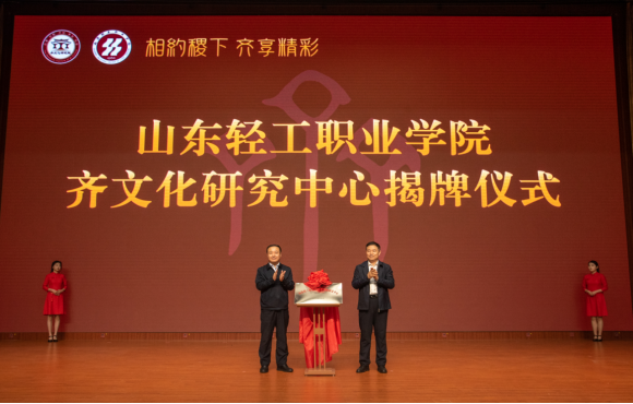 在与会领导嘉宾的共同见证下,范桂君与毕雪峰共同为山东轻工职业学院齐文化研究中心揭牌。