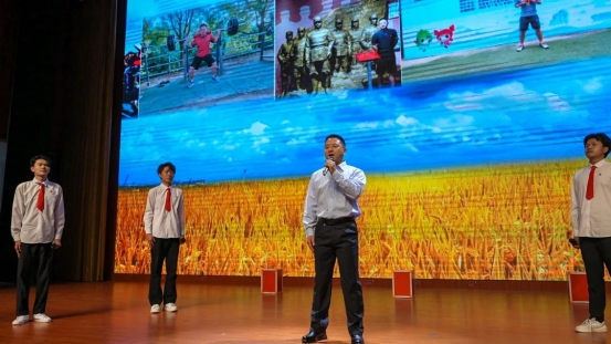 诗会的第一篇章,“榜样力量,追光前行”。学校领导为荣获国家、省、市、校各级荣誉的青年典型颁奖,表扬他们在青春的赛道上奋力奔跑,勤于学习、勇于创新、敢于超越。