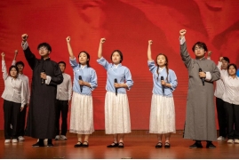 诗会的第二篇章,“踔厉奋发,踵事增华”。以朗诵《从青春出发》开篇,《闪耀吧 青春的火光》《青春的颜色》《以青春之名》,展现了我校青年学子“小我融入大我,青春献给祖国”的矢志决心和奋斗拼搏的青春风采。《盛世中华》《聆听青年》《读中国》回望祖国奋进征程,彰显青年坚定跟党走、建功新时代,用实际行动践行“请党放心、强国有我”的青春誓言。《以青年之魂 铸民族华章》《聚青春之火 燃时代之光》《我们的青年时代》在时空交织和古今交汇之中,与先辈们对话,承担使命,为新时代中国的发展奉献自己的一份力量。