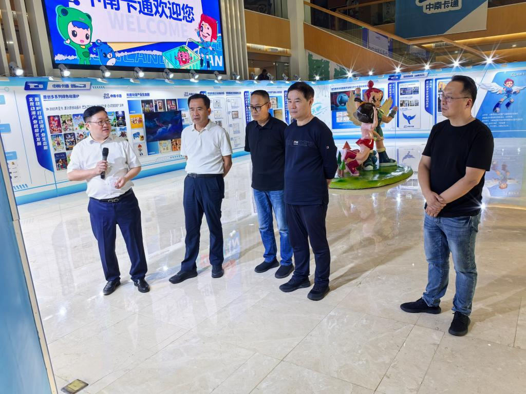 考察期间,范桂君一行在中南卡通总经理沈玉良陪同下,参观了企业的产品展示中心、动画制作中心等核心区域,详细了解了中南卡通在原创IP开发、三维动画制作、数字特效、虚拟现实技术应用及产业化运营等方面的先进经验与丰硕成果。中南卡通以科技赋能文化、以创新驱动发展的企业理念与全产业链布局,给考察团留下了深刻印象。