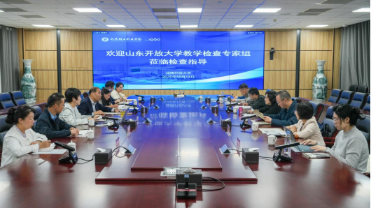 本站讯(通讯员 徐梦华)10月14日,山东开放大学党委副书记、党委统战部部长王瑛,党委委员、党委组织部部长程亮率领开放教育综合检查组一行莅临我校,开展开放教育综合教学实地检查。学校党委副书记、校长袁雷,党委副书记唐勋,党委委员、党委宣传部部长夏文燕及淄博开放大学相关负责同志陪同活动。