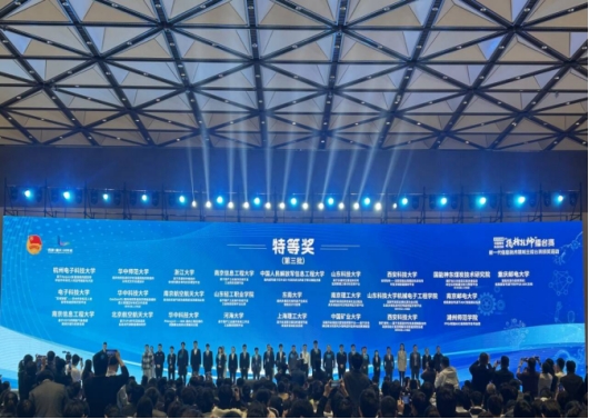 本站讯(通讯员 袁奇 逄红 尹婉君 孙玉洁)10月26日—28日,2025年度中国青年科技创新“揭榜挂帅”擂台赛新一代信息技术领域主擂台赛在西部科学城重庆高新区成功举办。经过激烈角逐,我校信息工程系教师孟英杰、尹婉君、俞明秀指导,学生孙琦钰等完成的《鸿枢天工冰柜零部件智能装配工业数采控制平台》荣获特等奖,学生闫法傲等完成的《鸿蒙视联计划电视零部件智能装配工业数采控制平台》荣获三等奖。