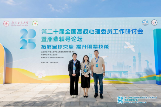 本站讯(通讯员 许凯 阎欣)11月5日至7日,第二十届全国高校心理委员工作研讨会暨朋辈辅导论坛在广东工业大学顺利召开。我校教师李敏、许凯分别受邀在“高校心理委员与朋辈工作交流”和“高职院校心理委员工作交流”分论坛作典型发言。商务贸易系学生张英彤成功入选“全国百名心理委员风采展示”。